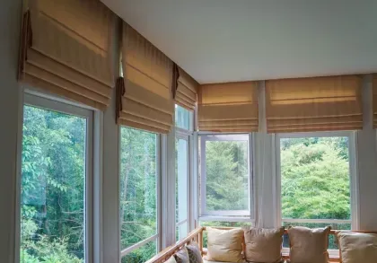 Considere una persiana romana para complementar con sus cortinas existentes, agregando moda a su ventana mientras que también proporciona calor y aislamiento adicionales.