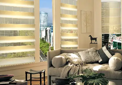 La más innovadora cortina, que proporciona privacidad pero a la vez permite una visión total al exterior. Al abrirse sus vanes ofrece un efecto de “cascada” en la tela elegida. Larga duración por ser elaborada con sistemas de persianas enrollables.